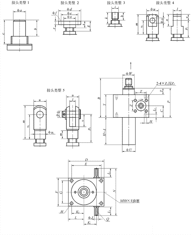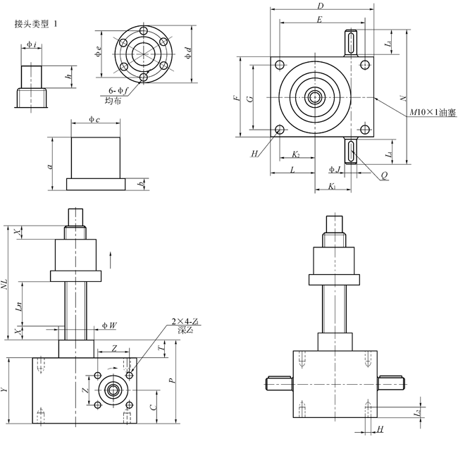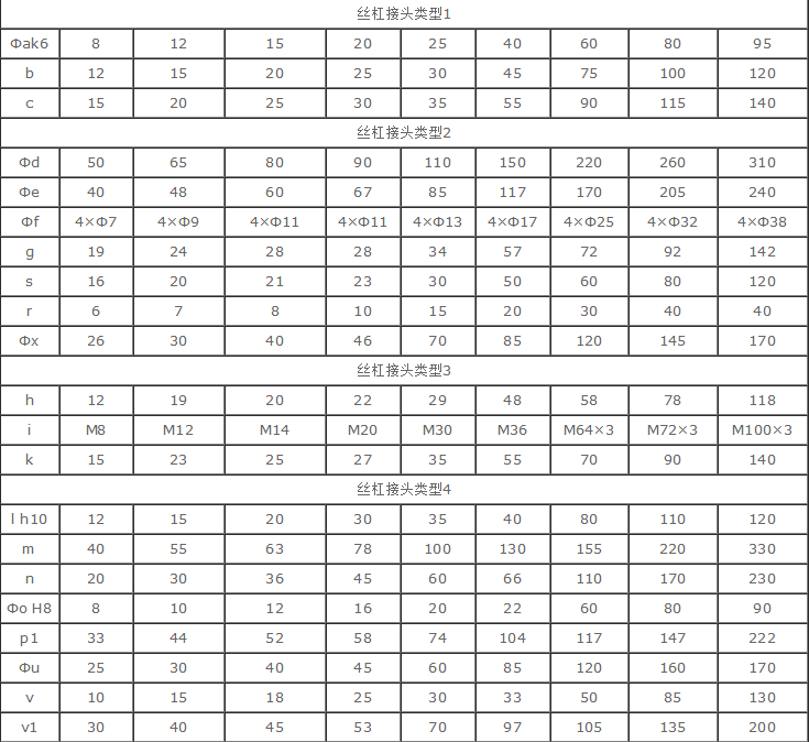 B型結(jié)構(gòu)形式的絲杠頭部分為:1型(圓柱),0型(無接頭)共二種。